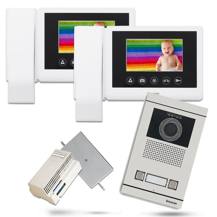 پکیج 2 واحدی آیفون تصویری HS-43TK/M100I شامل دو عدد ماینتور 4.3 اینچ حافظه دار ، پنل تصویری 2 واحدی فرداد ، ترانس 730 سیماران و قفل بازکن زنجیری سیماران یکی از بهترین انتخاب ها برای خرید آیفون تصویری میباشد.